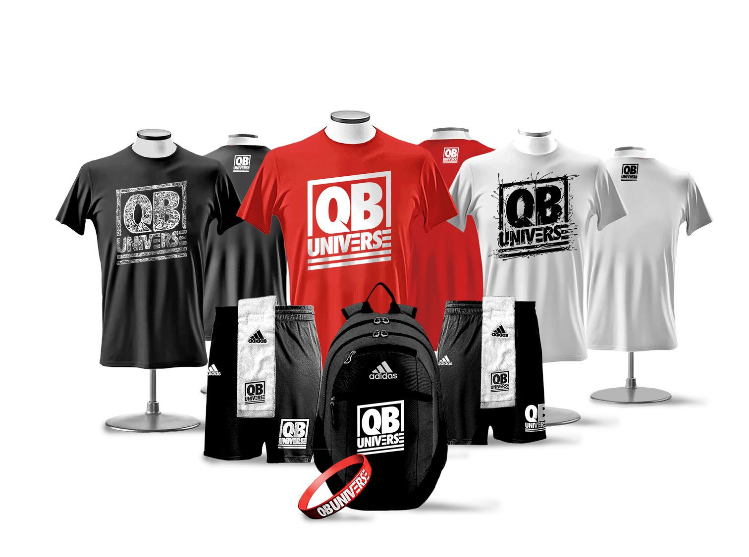 At QBUniverse events you receive the best gear pack in the industry. Players are outfitted each day in Official QBUniverse Apparel by Adidas.